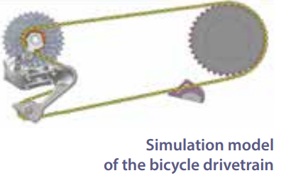 自行车变速器性能可从两个方面评价:其一与运动相关,比如如何顺利、准确地进行换挡;再一个与能量有关,如换挡过程需要的人力是多大,换挡过程的能量损失是多少。自行车链条包含许多链节,准确仿真自行车变速器需要精确计算链轮和所有链节间的接触。然而每个变速器仿真模型都需要创建许多元素,手动建模非常麻烦,尤其是需要为每个链节定义复杂的接触,极为耗时。同时,任何组件的更改设计都需要创建新的仿真模型。基于RecurDyn二次开发通过C语言编写脚本来自动化建模,可快速创建自行车传动链模型,通过优化接触建模,可缩减模型的仿真求解时间。通过定制开发,可有效地对链节的各种形状、链轮的安装角度以及链轮和销间的公差进行建模、仿真和分析。