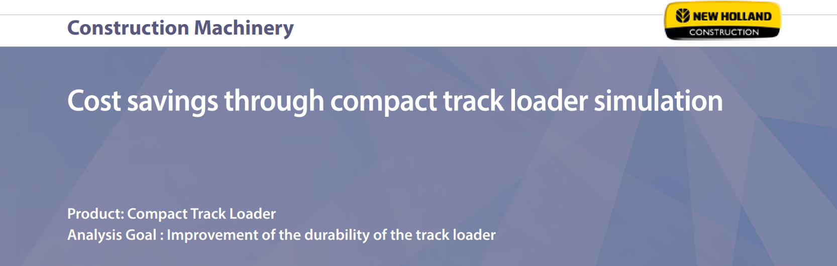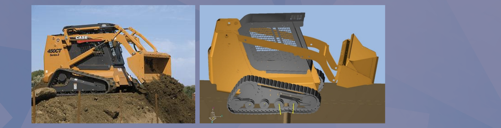 CASE NEW HOLLAND (CNH), a leading agricultural and construction equipment company, is increasing its motion simulation capabilities as its product designs evolve. One example is the design of compact track loaders that were developed to provide increased traction and reduced ground pressure as compared to traditional skid-steer loaders with tires. Since the simulation results were obtained more quickly than physical testing, CNH could focus on the areas of the design to improve the performance of the product. Through simulation, CNH could achieve system level improvements as well as component level improvements and consequently the product durability.
