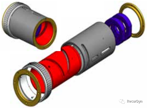 光学仪器需要实现精确的运动控制和间隙控制,通过光学元件的旋转运动控制凸轮筒,旋转运动经凸轮从动件转化为直线运动,从而借助光学镜头外壳的线性运动调节光学放大率。在设计早期阶段通过RecurDyn仿真验证了仪器平滑运动、精确缩放控制的有效性,给出了关键结构件凸轮上的应力和疲劳耐久结果,确定了执行机构的最小扭矩。