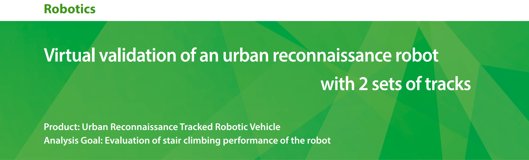 侦察机器人必须能够在各种驾驶条件下执行任务,在城市环境执行任务时可能会遇到机动性的极端挑战,比如攀爬楼梯。由主履带与子履带共同构成的双履带机器人,在上楼梯时子履带系统平放,能提供更长的接触长度,着陆平地后子履带系统向上旋转,可缩短机器人所需的间距,且便于机器人整体旋转。一个评估各类机器人车辆对城市任务适用性的军事研究小组,在概念阶段通过仿真手段来预测机器人车辆的可能行为,然而建立复杂的履带多体模型并运行仿真并非易事,RecurDyn独特的履带工具包所提供的履带组件库和组装过程自动化,为双履带城市侦察机器人爬楼梯性能的有效验证带来了极大的便利。