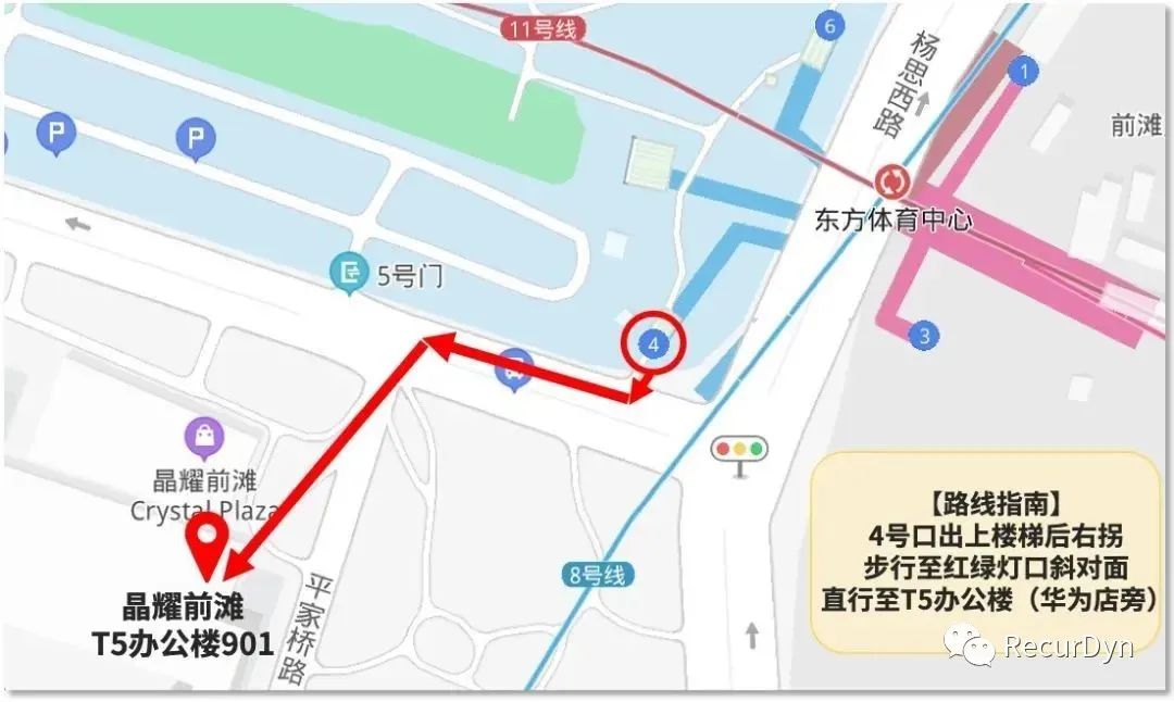 地铁6/8/11号线 东方体育中心站4号口出,按下图指示步行即达。