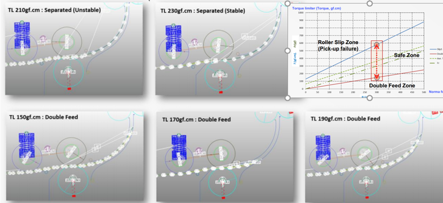 MTT2D包含专门的二维建模器和求解器。提供二维运动的媒介轨迹仿真建模,广泛应用于进纸机构(如打印机、复印机、传真机),银行设备(如ATM取款机、点钞机)等。能够检查由于各种原因引起的潜在堵塞,如不同的纸张尺寸、重量和刚度,由于高温,高湿度,磨损等引起的纸张属性的不同等。