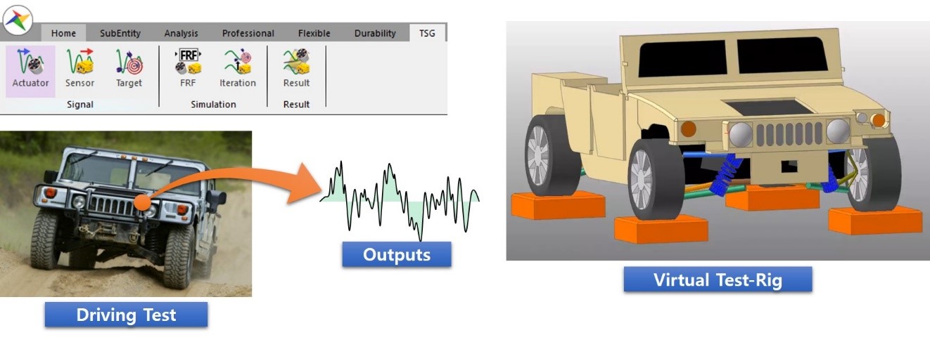 在多种多样的非线性输入的实际驾驶实验中,存在像从中测量的位移,速度,加速度,力一样的目标信号时,通过TSG工具箱可以生成与测量的目标信号具有一样输出的信号。并且,去除实际驾驶实验中的非线性建立简化的虚拟驾驶实验台模型,通过该模型可以更加迅速容易的进行动力学仿真。