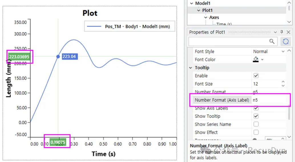 在曲线属性框中增加了Number Format (Axis Label) 属性,可分别修改鼠标光标所在曲线每一轴数字显示属性。